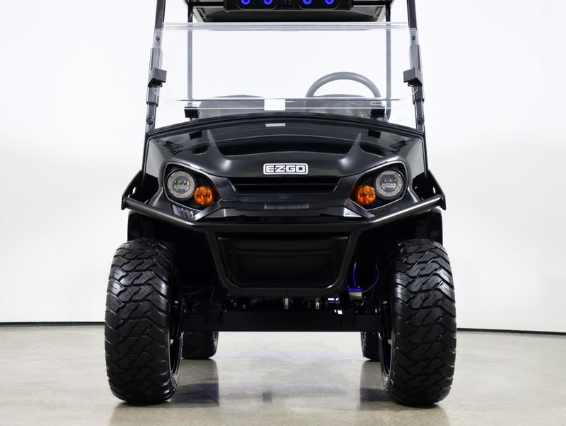 For those seeking an upgraded experience, the Deluxe Package elevates both style and functionality. Enjoy premium E-Z-GO seating, a premium dash kit, and a clear folding windshield for added protection in changing weather. LED underglow lighting enhances visibility and style, while the EcoXGear Bluetooth soundbar delivers powerful, crystal-clear audio for entertainment on every ride. A steel brush guard adds extra front-end protection, and the graphene body treatment ensures a long-lasting, high-gloss finish that resists wear and fading.